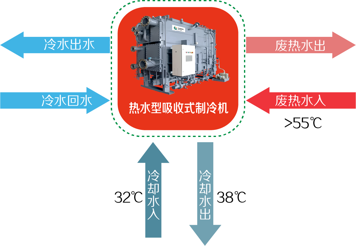 工業(yè)生產(chǎn)過程中,會(huì)產(chǎn)生大量的余熱與化學(xué)反應(yīng)熱,這部分熱量排放到周圍的環(huán)境中,不僅造成大量能源的浪費(fèi),同時(shí)會(huì)對(duì)周邊環(huán)境造成嚴(yán)重的熱污染。而吸收式制冷技術(shù)可以充分利用排放的余熱與化學(xué)反應(yīng)熱,制取冷水滿足工藝本身的用冷需求。有效提高系統(tǒng)能源的綜合利用率,降低生產(chǎn)成本,提高企業(yè)競(jìng)爭(zhēng)力,達(dá)到節(jié)能、節(jié)水、減排的效果。